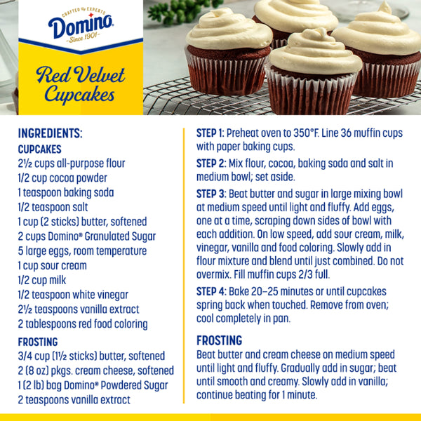 Add the sweet taste of Domino® Granulated Sugar to your next delicious creation. This delightful sugar is perfect for baking, preserving and sweetening beverages. So go ahead and stir it, sprinkle it, or mix it with your favorite recipes. It is the perfect fine, free-flowing sugar for cookies, sauces, teas and more!
